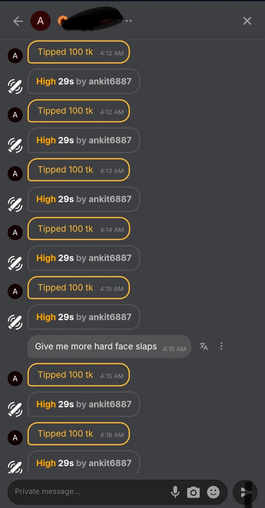 เป้าหมาย: 42 tk Write the last tipper name on boobies